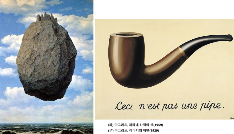 마그리트의 작품은 상징적인 이미지나 문자에 의해 의미가 좌절되는 형식이다. 보편의 가치를 지닌 이름은 소통의 언어일 뿐이지 개별적인 속성을 지시할 수 없다는 의미다. 그림 속 파이프는 사물의 외 연일 뿐이지 실재는 아니라는 가치를 함축한다. 마그리트도 ‘오브제는 결코 그것의 이름이나 이미지와 같은 방식 으로 기능을 수행하지 않는다’라고 말한다.