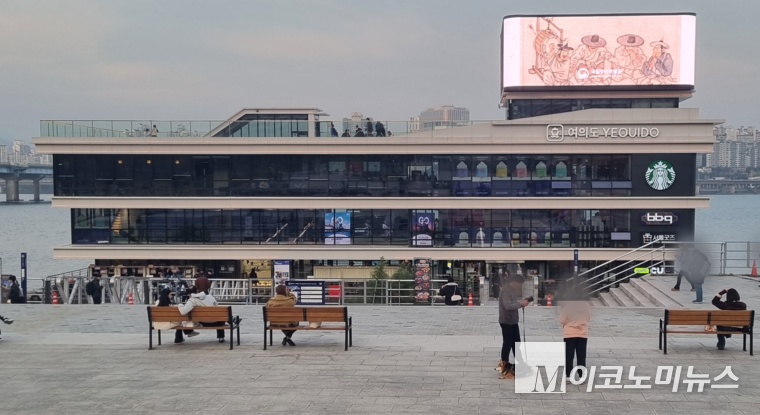 총 3층 건물로 1층은 타는 곳과 편의점, 2층에는 BBQ 치킨, 3층에는 스타벅스 매장이 자리하고 있다. 옥상은 피크닉존으로 조성됐다. 전체 건물의 규모는 크지 않다. 바로 옆 한강유람선 선착장과 비교해 매우 작게 느껴졌다.