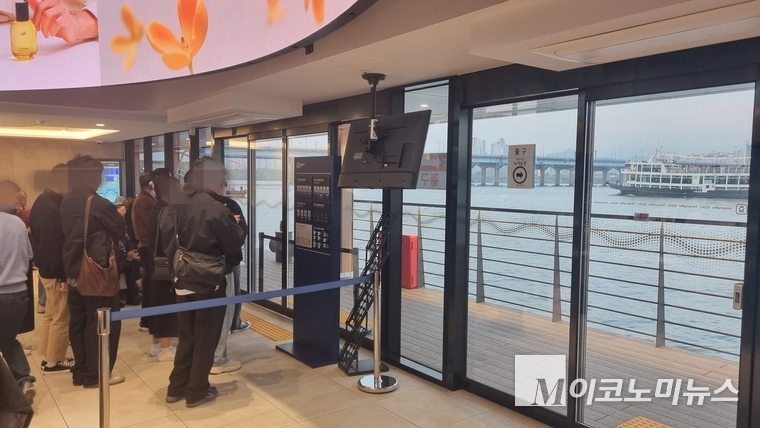 배를 타기 위해 선착장에 도착한 시간은 오후 5시 경이다. 대합실에는 탑승을 기다리는 이용객들로 가득 차 있었다. 대합실이 너무 좁게 느껴졌다. 개찰구 앞 여유 공간도 넓지 않은 점도 문제였다. 서울시는 내년 3월부터 출퇴근 시간대 운항을 시작할 예정이어서 현재와 같은 규모에 인파가 몰리면 큰 혼잡이 예상된다.