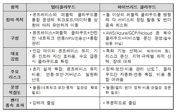 ◇‘보안’ 방점 하이브리드, ‘독립성’ 방점 멀티 클라우드